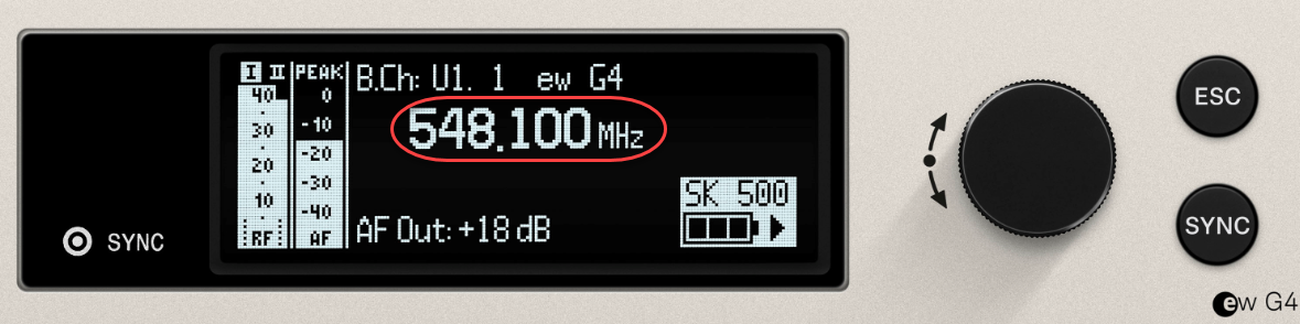 Solange sich Sender und Empfänger im gleichen Hardware-Bereich befinden, können Sie sie mit den Optionen „TUNE“ oder „BANK“ + „CHANNEL“ im Menü auf dieselbe Frequenz abstimmen. Sie finden verschiedene „BANKS“ (Gruppen) von Frequenzen. Jede „BANK“ hat mehrere „CHANNELS“. Wenn Sie mit einem Mehrkanalsystem arbeiten, sollten Sie nur Kanäle aus derselben Bank verwenden, um sicherzustellen, dass alle zusammen funktionieren.