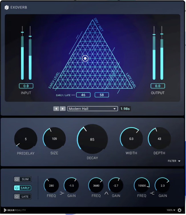 It is rare to find a reverb plugin that offers a high level of depth perception in a mix. Most reverbs provide a decent stereo width, but they often sound flat or two-dimensional. However, many don't have much of an impact on how close or distant a sound feels. EXOVERB dials in the perfect amount of depth with a clear and responsive sound.