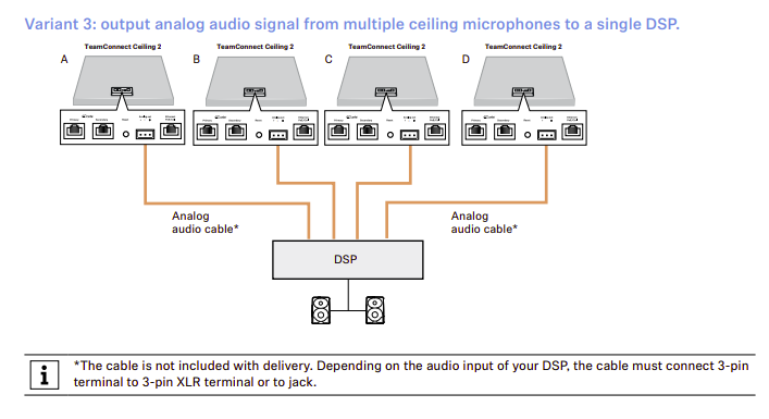 Please note the input style connection of your DSP's input, as analog cables are not provided with your Team Connect ceiling microphone.