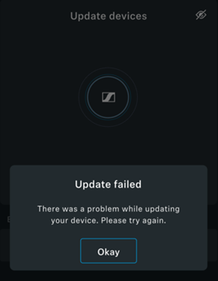 Si la mise à jour échoue à un moment donné du processus, vous recevrez une notification de l'application. Appuyez sur le bouton Okay pour continuer.