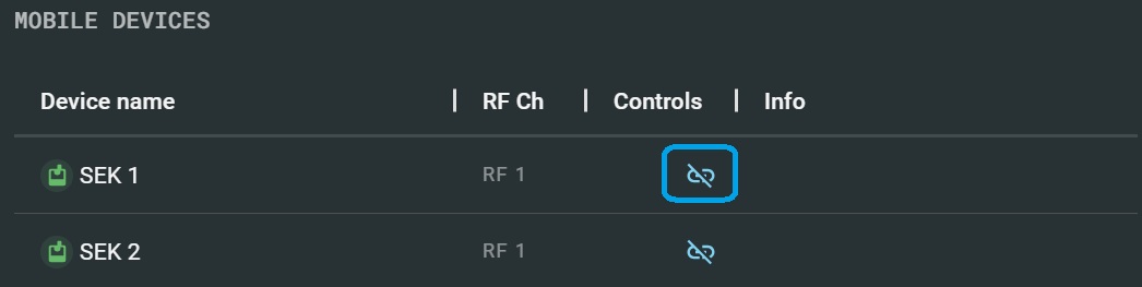 - Pour dissocier un appareil mobile, vous devez avoir son mode de liaison dans les paramètres Mic et IEM réglé sur Aucun.