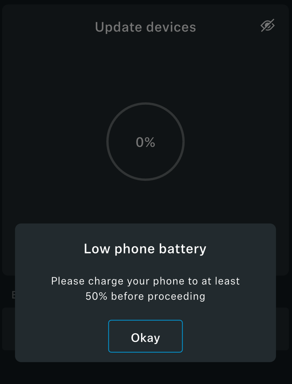 注意: 携帯電話のバッテリーが50%未満の場合、アプリでファームウェアアップデートを実行できません。アップデートを行う前に携帯電話を充電する必要があります。