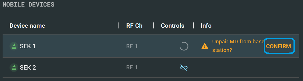 - モバイルデバイスのペアを解除するには、Mic and IEM 設定の Link Mode を None に設定する必要があります。