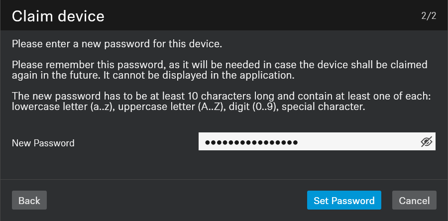 3. 新しいパスワードを作成し、必要に応じてメモしてください。このデバイスにリモートアクセスまたは制御を希望する人は誰でもこのパスワードが必要です。