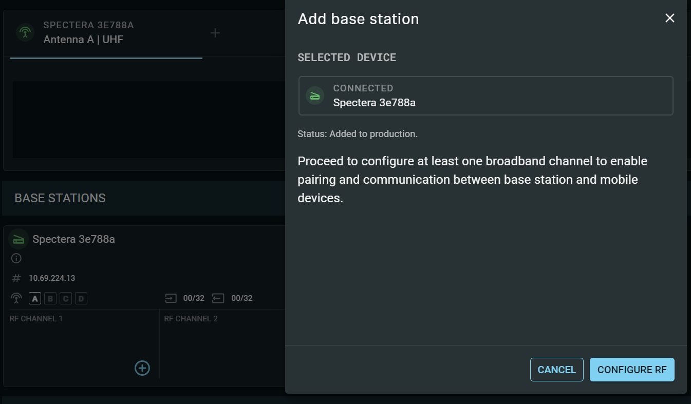 - 添加基站的最后一步是配置 RF,在弹出的对话框中点击配置 RF。