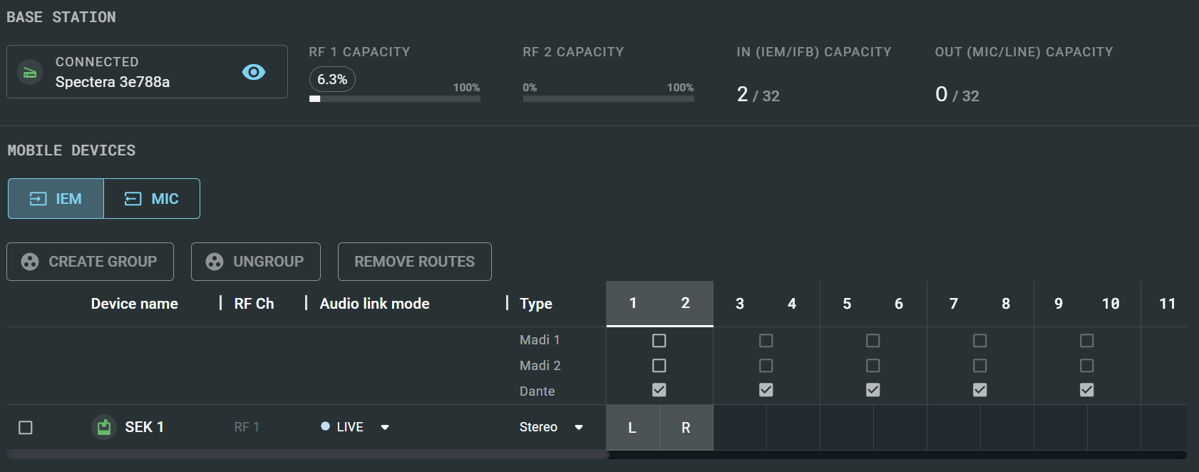 - 返回主页面时,点击已配对的 SEK,其设置将显示在右侧,如果您向下滚动到输入 IEM/IFB。